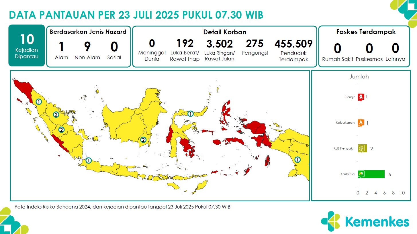 Disini anda dapat mengunduh laporan pemantauan harian berpotensi kejadian Krisis Kesehatan tanggal 23 Juli 2025 Lihat Laporan Pemantauan Harian Pusat Krisis Kesehatan 23 Juli 2025