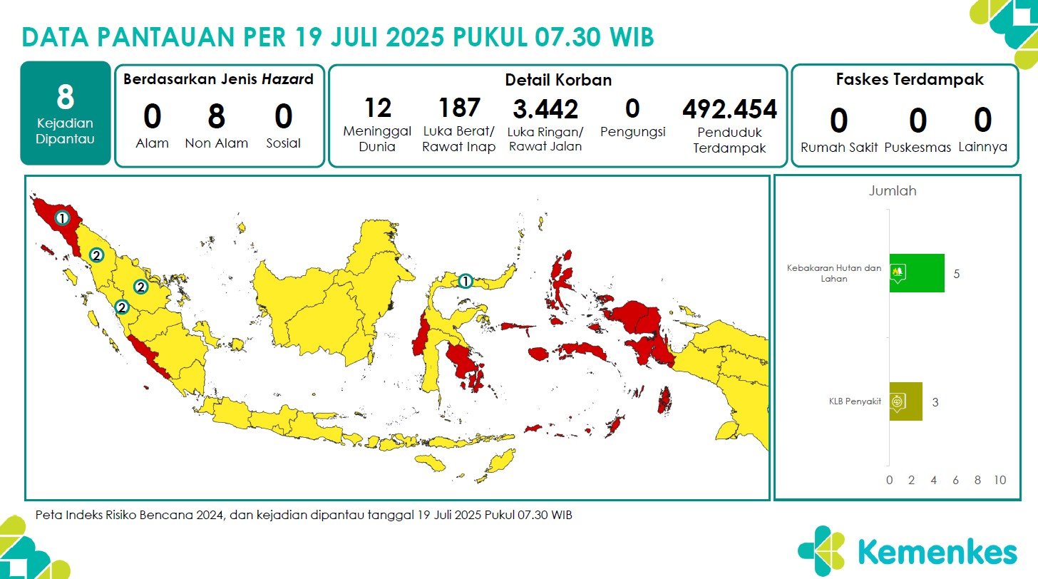 Disini anda dapat mengunduh laporan pemantauan harian berpotensi kejadian Krisis Kesehatan tanggal 19 Juli 2025 Lihat Laporan Pemantauan Harian Pusat Krisis Kesehatan 19 Juli 2025