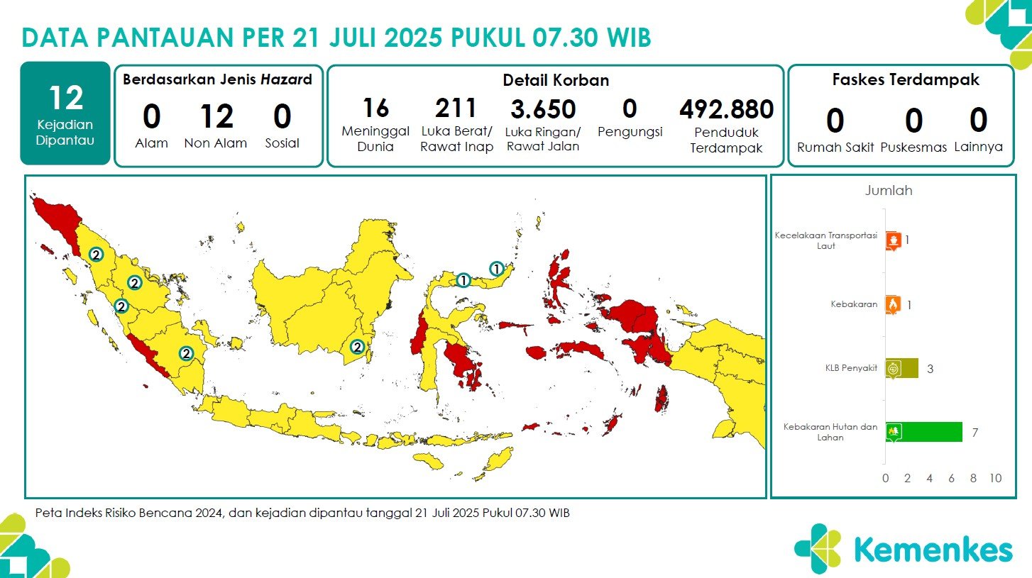 Disini anda dapat mengunduh laporan pemantauan harian berpotensi kejadian Krisis Kesehatan tanggal 21 Juli 2025 Lihat Laporan Pemantauan Harian Pusat Krisis Kesehatan 21 Juli 2025