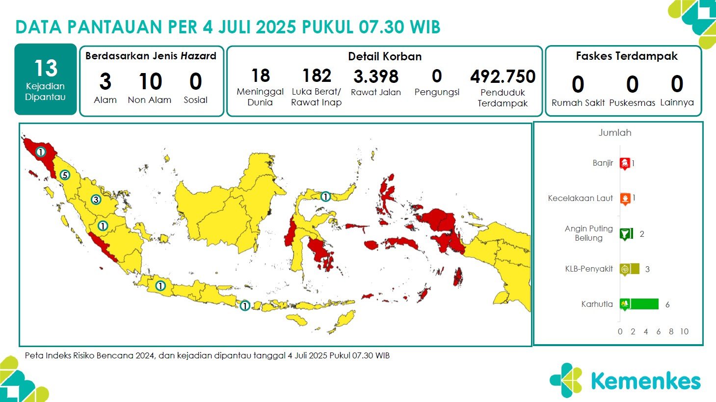 Disini anda dapat mengunduh laporan pemantauan harian berpotensi kejadian Krisis Kesehatan tanggal 4 Juli 2025 Lihat Laporan Pemantauan Harian Pusat Krisis Kesehatan 4 Juli 2025