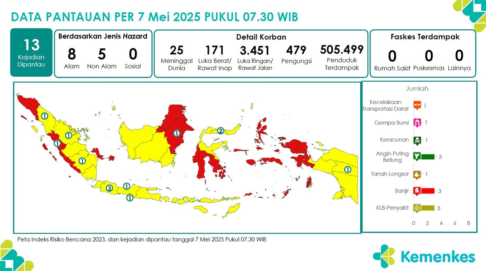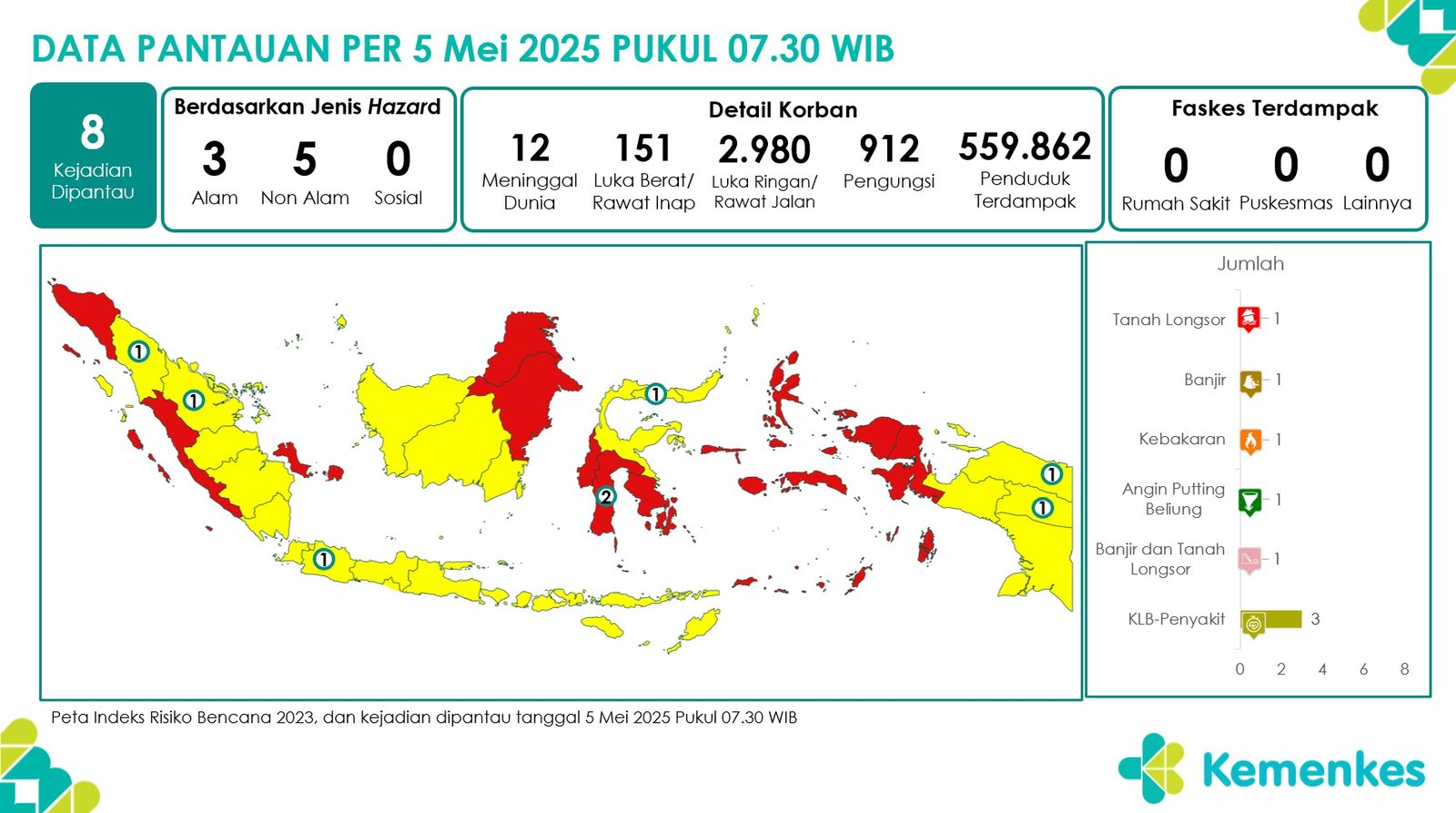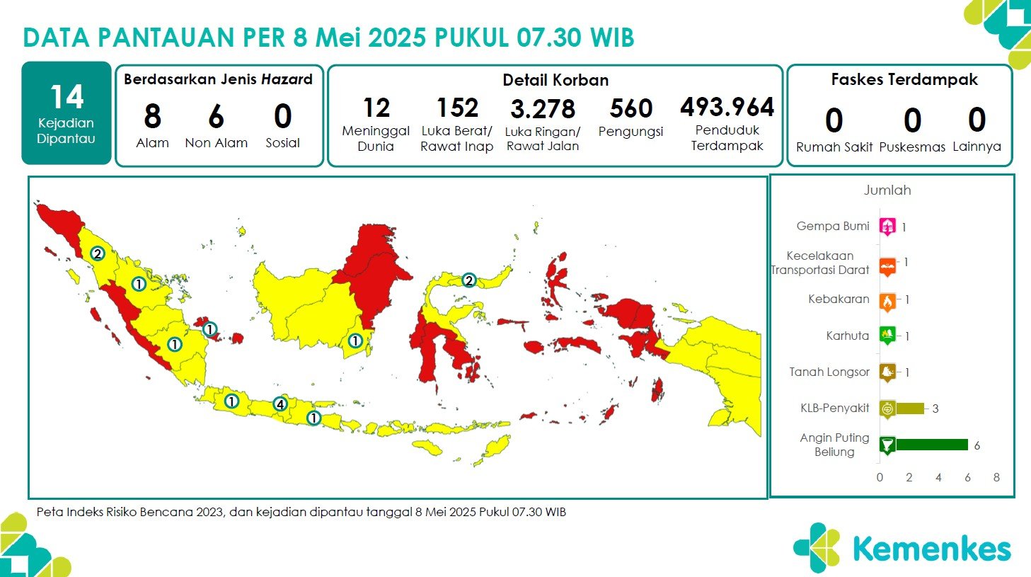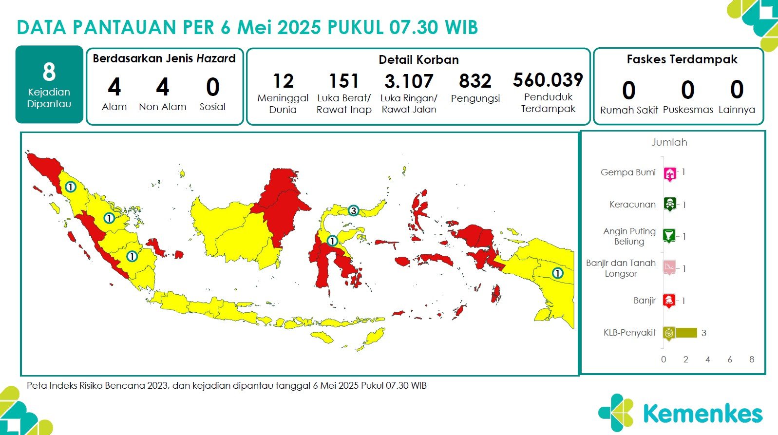 Disini anda dapat mengunduh laporan pemantauan harian berepotensi kejadian Krisis Kesehatan tanggal 8 Mei 2025 Lihat Laporan Pemantauan Harian Pusat Krisis Kesehatan 8 Mei 2025