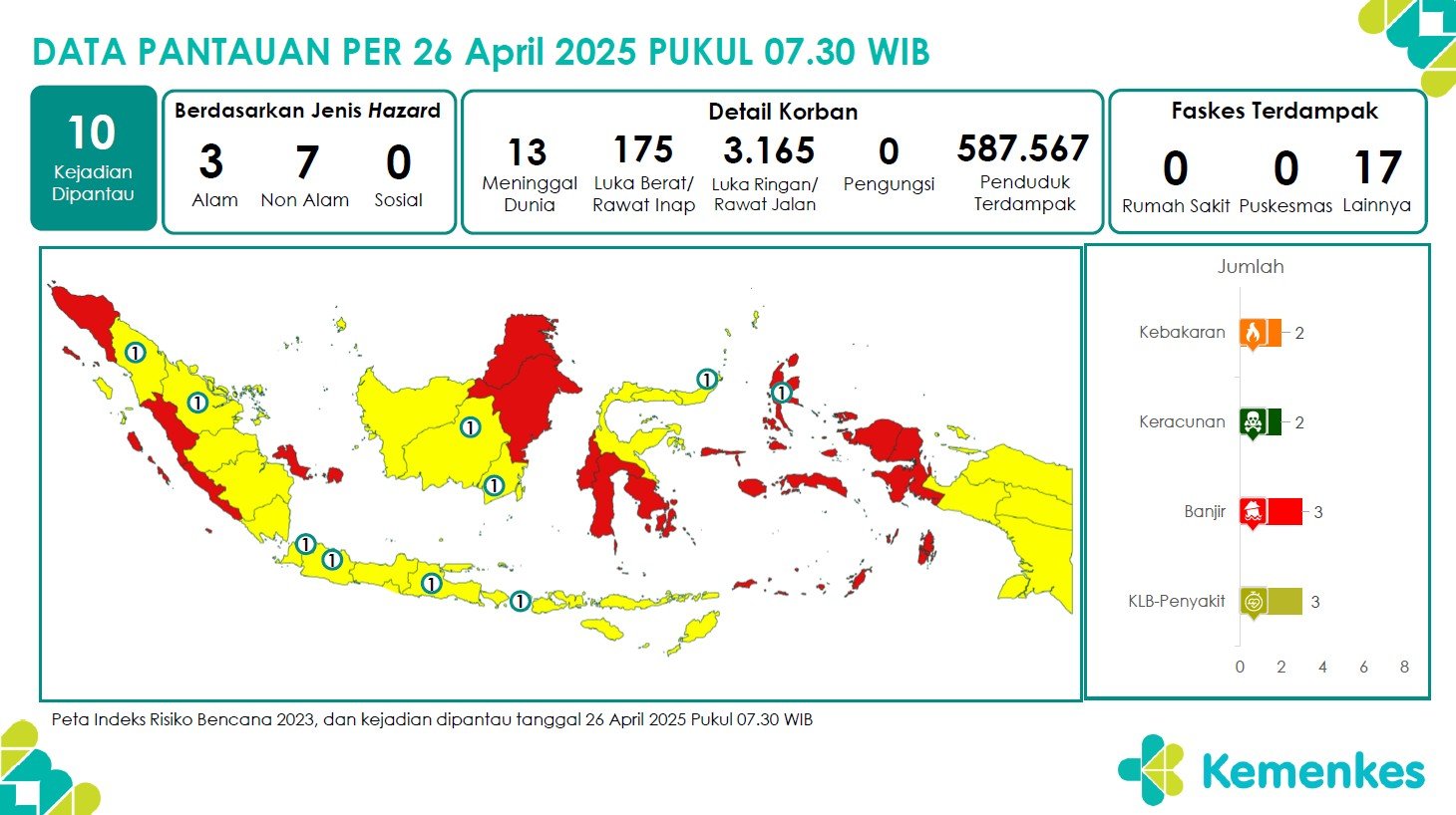 Disini anda dapat mengunduh laporan pemantauan harian berepotensi kejadian Krisis Kesehatan tanggal 26 April 2025 Lihat Laporan Pemantauan Harian Pusat Krisis Kesehatan 26 April 2025