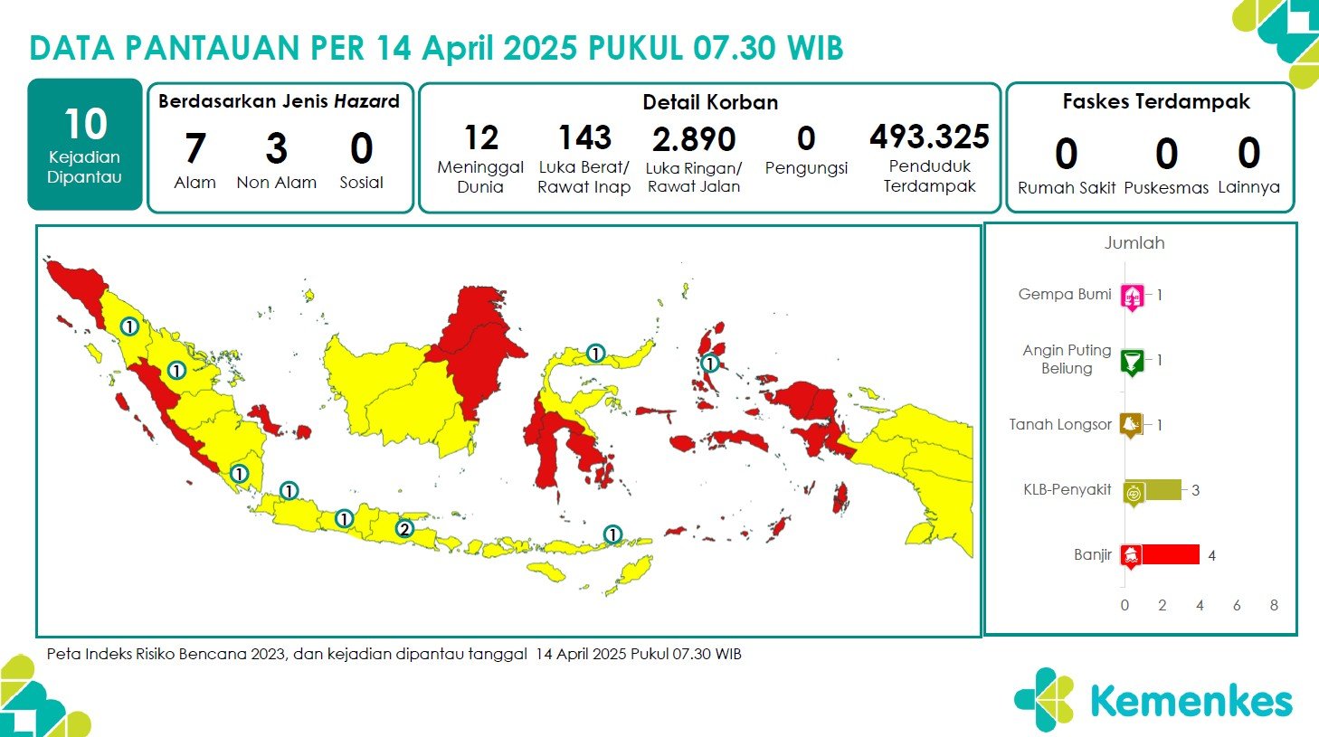 Disini anda dapat mengunduh laporan pemantauan harian berepotensi kejadian Krisis Kesehatan tanggal 14 April 2025 Unduh Laporan Pemantauan Harian Pusat Krisis Kesehatan 14 April 2025