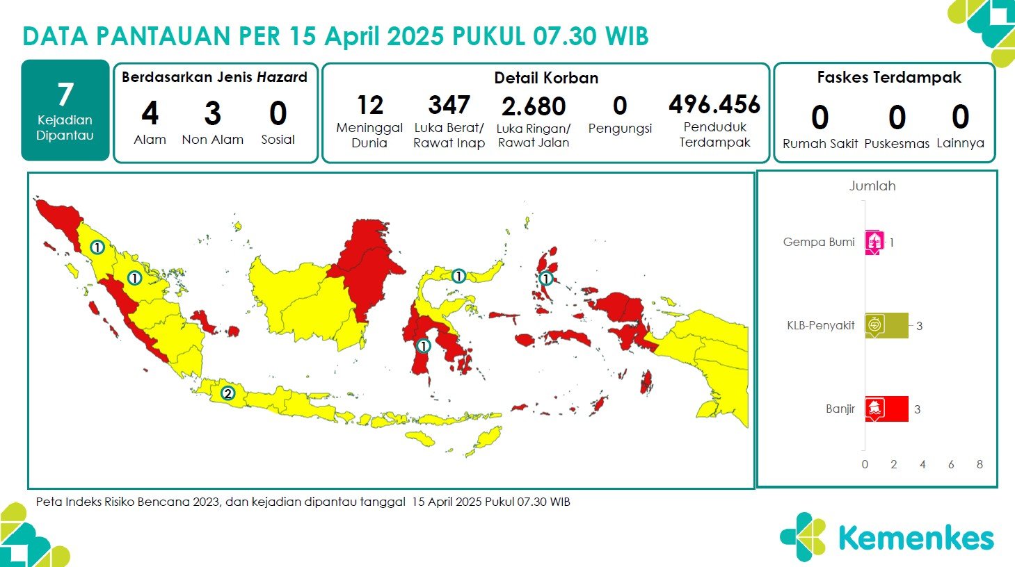 Disini anda dapat mengunduh laporan pemantauan harian berepotensi kejadian Krisis Kesehatan tanggal 15 April 2025 Unduh Laporan Pemantauan Harian Pusat Krisis Kesehatan 15 April 2025