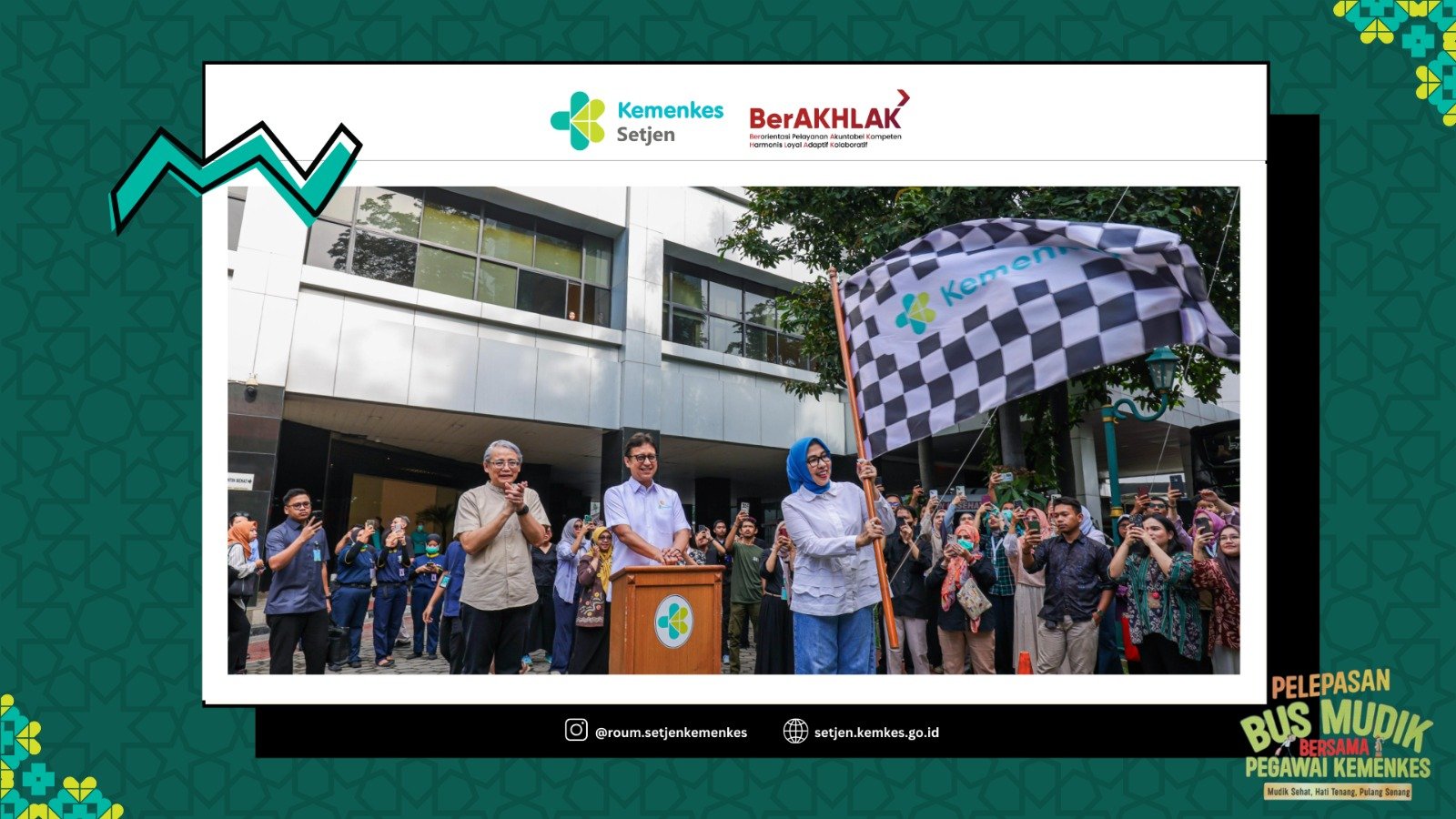 Jakarta, 26 Maret 2025, Kementerian Kesehatan menyelenggarakan acara Pelepasan Mudik Bersama 2025 menyambut Hari Raya Idul Fitri 1 Syawal 1446 H. Dengan tema “Mudik Sehat, Hati Tenang, Pulang Senang”, kegiatan ini bertujuan memberi kemudahan, keamanan, dan kenyamanan bagi pegawai Kemenkes yang mudik bersama keluarga.Sekretaris Jenderal Kementerian Kesehatan, Kunta Wibawa Dasa Nugraha, melaporkan bahwa tahun ini disiapkan 29 bus dengan total 1.190 kursi, dan saat ini sudah terisi 1.000 kursi. Tujuan bus meliputi Purworejo, Yogyakarta, Solo, Surabaya, Semarang, Malang, Lampung, Palembang, Padang, dan Bukit Tinggi.Peserta mudik terdiri dari pegawai beserta keluarga dari seluruh unit Eselon I dan unit pelaksana teknis di Jakarta, termasuk ASN, PPNPN, pegawai alih daya, serta pegawai Bank mitra di Kemenkes.Dalam pelaksanaannya, kegiatan ini didukung oleh berbagai pihak yang telah berkontribusi menyediakan armada bus, yaitu: Biro Umum (15 bus), Bank BNI (6 bus), Bank Mandiri (6 bus), Bank BRI (1 bus), Bank BSI (1 bus)Untuk keselamatan, pengemudi telah melakukan pemeriksaan kesehatan di Puskesmas, Klinik, dan RSUD. Surat Keterangan Sehat diverifikasi oleh Unit Pelayanan Kesehatan (UPK) Kemenkes, dan dilakukan pemeriksaan tambahan terkait tekanan darah, gula darah, serta NAPZA oleh Rumah Sakit Ketergantungan Obat (RSKO) Jakarta.Menteri Kesehatan, Budi Gunadi Sadikin, memberikan sambutan apresiasi kepada seluruh pihak yang berkontribusi. Beliau mengingatkan peserta untuk selalu menjaga kesehatan dan keselamatan selama perjalanan, serta berharap kegiatan ini dapat memberikan kebahagiaan bagi peserta yang akan berkumpul dengan keluarga di kampung halaman.Menkes Budi Gunadi Sadikin, didampingi Ibu Ida Gunadi Sadikin, para pimpinan tinggi, dan pegawai Kemenkes, melepas bus secara simbolis dengan mengibarkan bendera.Terima kasih kepada seluruh pihak yang berpartisipasi. Semoga perjalanan ini berjalan aman, lancar, dan selamat sampai tujuan. Selamat merayakan Idul Fitri bersama keluarga!