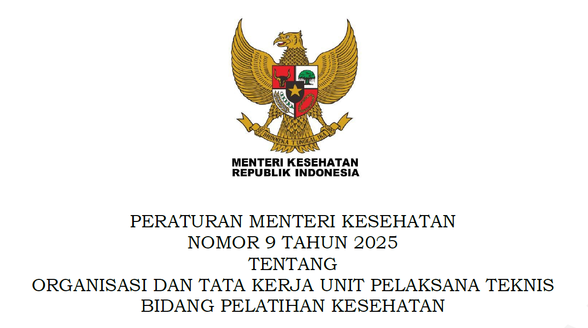 Peraturan Menteri Kesehatan Nomor 9 Tahun 2025 Tentang Organisasi Dan Tata Kerja Unit Pelaksana Teknis Bidang Pelatihan KesehatanUnduh salinan : disini