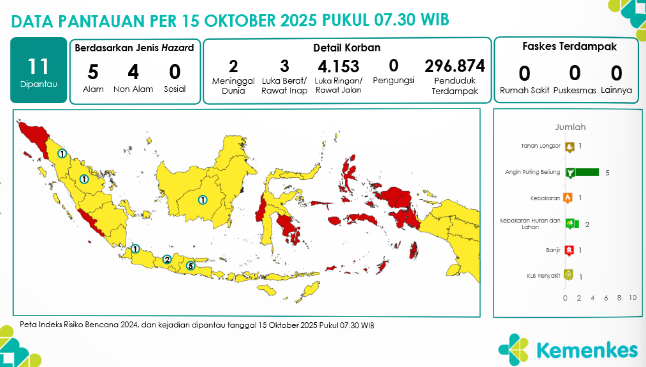 Disini anda dapat mengunduh laporan pemantauan harian berpotensi kejadian Krisis Kesehatan tanggal 15 Oktober 2025 Lihat Laporan Pemantauan Harian Pusat Krisis Kesehatan 15 Oktober 2025
