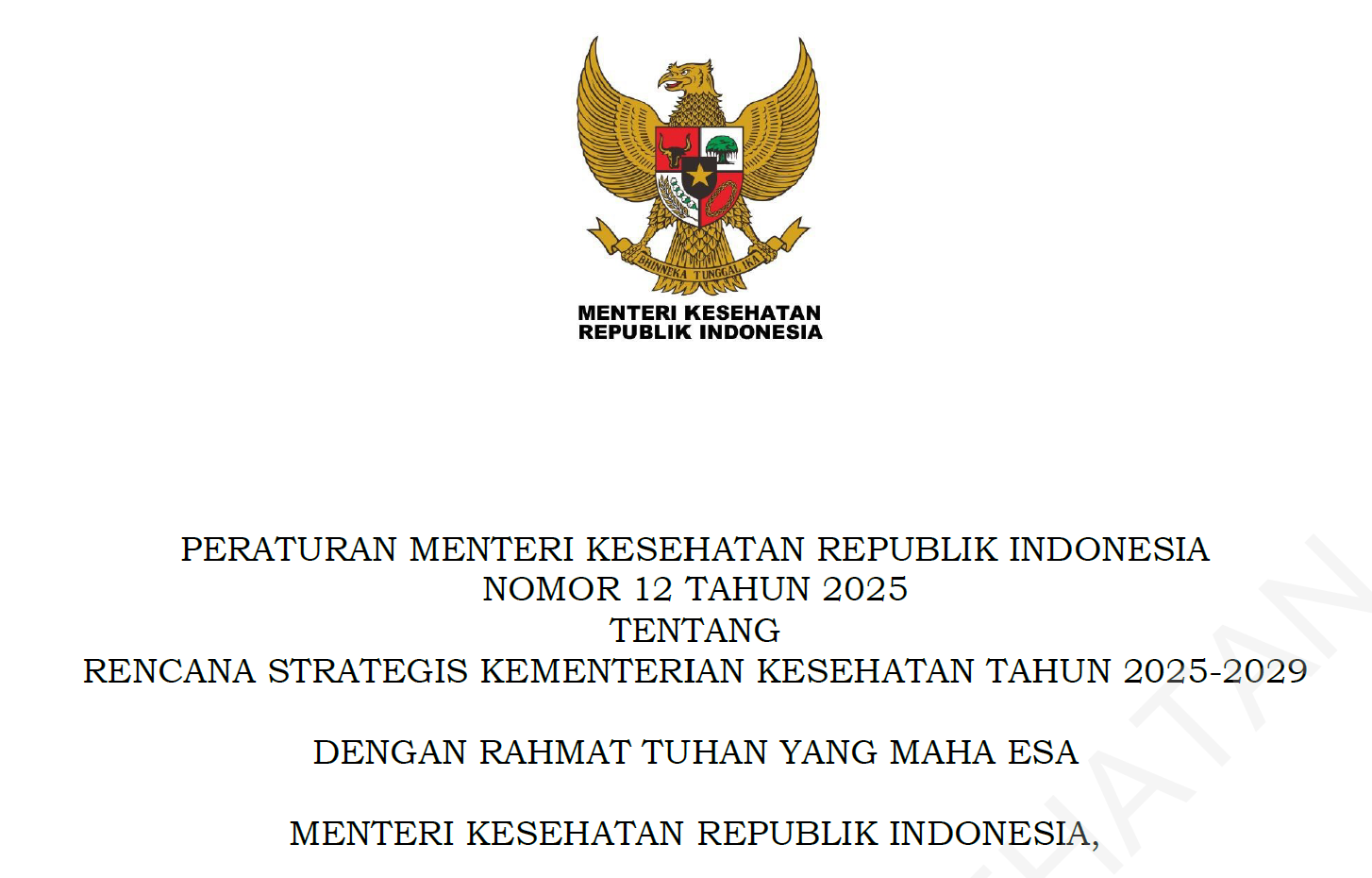 Peraturan Menteri Kesehatan Republik Indonesia Nomor 12 Tahun 2025 Tentang Rencana Strategis Kementerian Kesehatan Tahun 2025-2029 Unduh salinan : disini