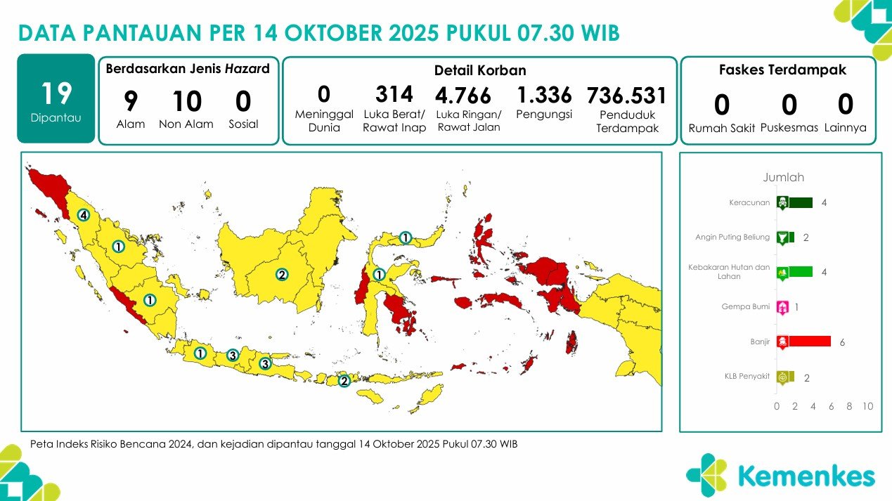 Disini anda dapat mengunduh laporan pemantauan harian berpotensi kejadian Krisis Kesehatan tanggal 14 Oktober 2025 Lihat Laporan Pemantauan Harian Pusat Krisis Kesehatan 14 Oktober 2025