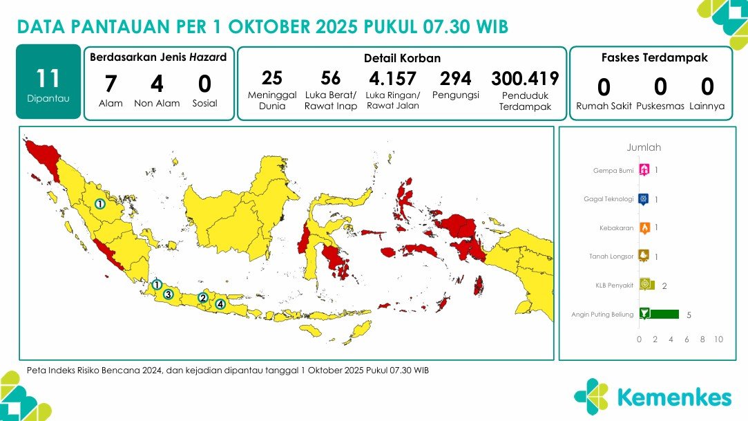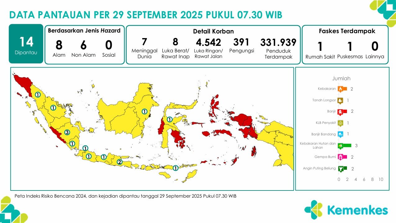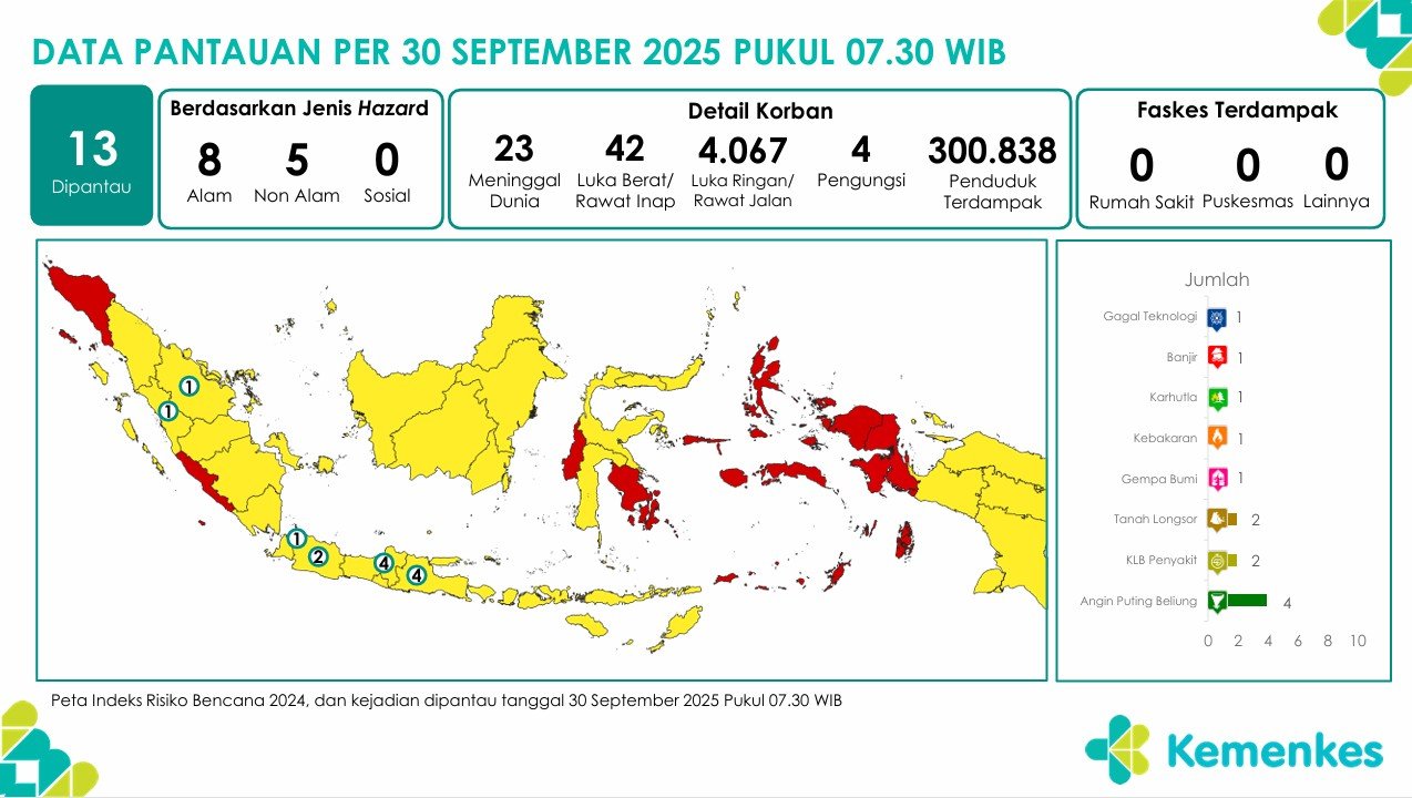 Disini anda dapat mengunduh laporan pemantauan harian berpotensi kejadian Krisis Kesehatan tanggal 30 September 2025 Lihat Laporan Pemantauan Harian Pusat Krisis Kesehatan 30 September 2025