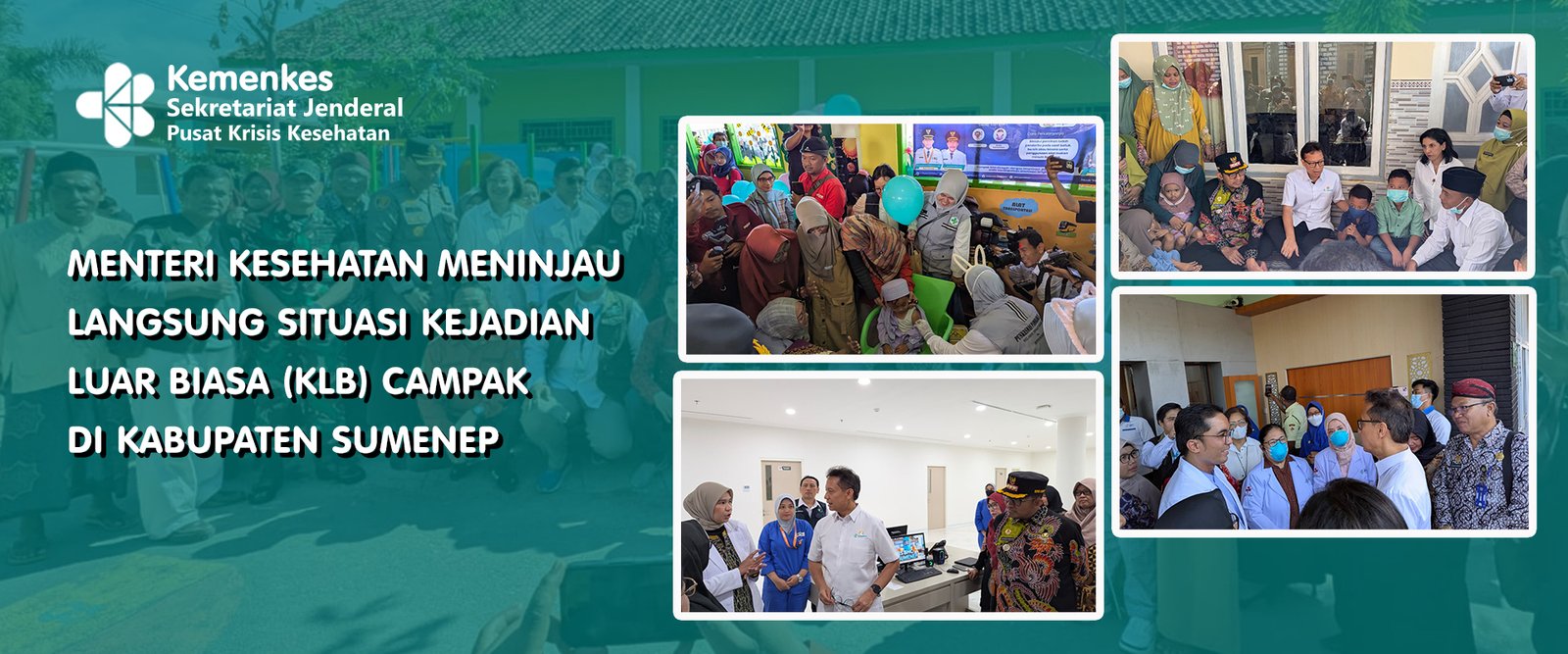 Sumenep, 28 Agustus 2025Menteri Kesehatan beserta jajaran melakukan kunjungan kerja ke Kabupaten Sumenep dalam rangka meninjau langsung penanggulangan Kejadian Luar Biasa (KLB) campak yang tengah berlangsung. Kunjungan ini bertujuan untuk memastikan penanggulangan KLB berjalan sesuai standar, memberikan arahan strategis, serta memperkuat koordinasi lintas sektor dalam upaya pengendalian penyebaran penyakit.Dalam kesempatan tersebut, Menteri Kesehatan beserta jajaran didampingi langsung oleh Bupati Sumenep. Kehadiran kedua tokoh ini menunjukkan komitmen pemerintah pusat dan daerah untuk bersinergi dalam melindungi masyarakat, mempercepat langkah-langkah respons, serta memastikan ketersediaan sumber daya yang diperlukan.Pada kesempatan ini Menteri Kesehatan beserta jajaran meninjau giat Outbreak Response Immunization di TK-PAUD Qurrota Ayun, dilanjutkan menuju RSI Garam Sumenep untuk meninjau penanganan pasien yang sedang dirawat, dan diakhiri dengan kunjungan ke rumah pasien yang sudah sembuh dari campak.Menteri Kesehatan juga menekankan pentingnya peran aktif masyarakat, tenaga kesehatan, dan lintas sektor dalam respons penanggulangan KLB agar KLB dapat segera teratasi.