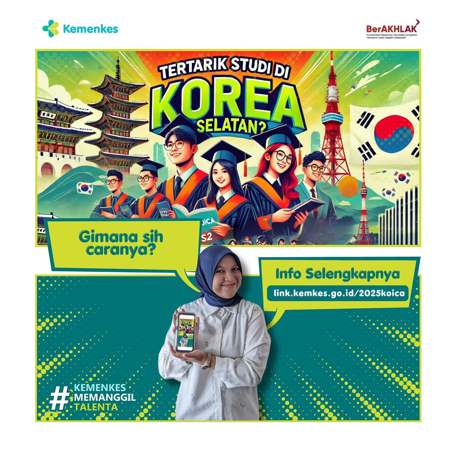 Dalam rangka meningkatkan kualitas sumber daya Aparatur Sipil Negara (ASN) Kemenkes, Pusat Pengembangan Kompetensi ASN Kementerian Kesehatan bekerja sama dengan Biro Kerja Sama Teknik Luar Negeri Kementerian Sekretariat Negara membuka pendaftaran Beasiswa KOICA Scholarship Program Batch 1 dari Pemerintah Korea Selatan.Pemerintah Korea Selatan menawarkan 15 (lima belas) program beasiswa jenjang pendidikan magister untuk tahun akademik 2025/2026. Kandidat yang akan mengikuti seleksi KOICA Scholarship Program diperkenankan untuk memilih 1 (satu) program studi.Masing-masing unit kerja dapat mengajukan Pegawai Negeri Sipil (PNS) talenta terbaik sebagai calon penerima beasiswa yang memiliki tugas pokok dan fungsi yang sesuai dengan program-program studi yang ditawarkan.Info Lebih lanjut dapat dilihat pada pengumuman link dibawah ini:Penawaran 2025 KOICA Scholarship Program Batch 1